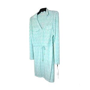 Calvin Klein Womens Blue Logo Long Sleeve Drawstring Collared Dress Sz 12 New