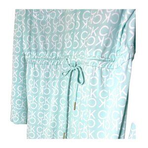 CALVIN KLEIN Womens Blue Logo Print Long Sleeve Drawstring Collared Dress Sz 12 NWT