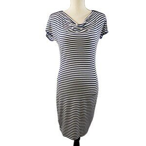 Calvin Klein Women’s Blue & White Stripe Jersey Knit Cowl Neck Dress - Size 2
