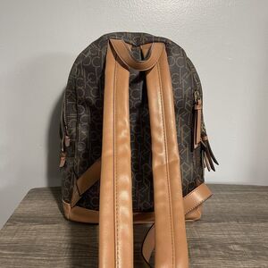 Calvin Klein Womens Brown Two Layers Medium Zip CK Logo Backpack