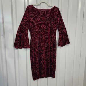 Calvin Klein Womens Burgundy Velvet Burnout Dress Bell Sleeves Size Approx 10