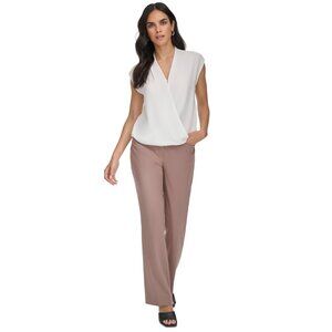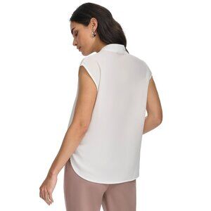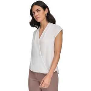 Calvin Klein Women's Cap Sleeve Faux-Wrap Blouse White Size L MSRP $59