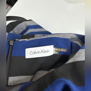 Calvin Klein Women’s Cap Sleeve Striped Belted Sheath Dress Multi Sz 18W