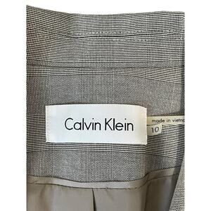 Calvin Klein Women's Career Blazer Size 10 Houndstooth Plaid Black White Jacket