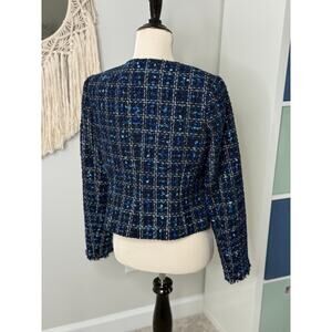 Calvin Klein Women's Careerwear Frayed Blue Tweed Open Jacket Blazer 10P