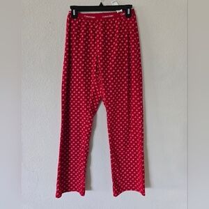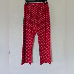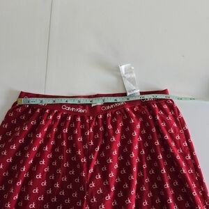 Calvin Klein Carousel Fleece Logo PJ Pants. Signature logo print pajama pants. Elasticized waistband. Soft fleece. Red and white all over CK print. Straight leg. In good condition.
