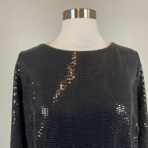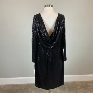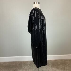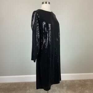 Calvin Klein Women's Cocktail Dress Size 16W Black Sequined Long Sleeve Shift