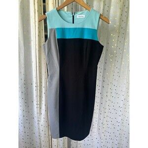 Calvin Klein Women's Color block Geometric Sleeveless Career Sheath Dress S