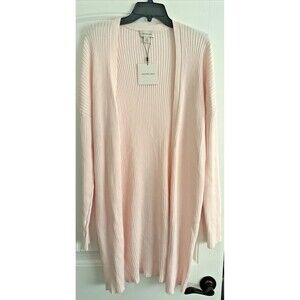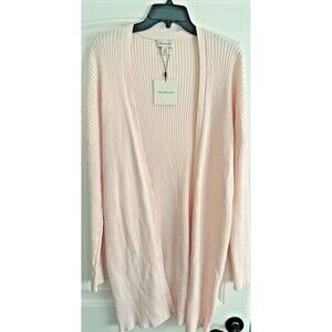 Calvin Klein Women's Cotton Ribbed Open-Front Duster Cardigan Sweater Pearl XL