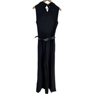 Calvin Klein Womens Cowlneck Drape Front Belted Black Jumpsuit Romper SZ 10 TP60982