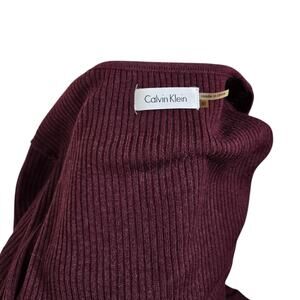 Calvin Klein Womens Cozy Sweater Dress Medium Burgundy Ribbed Knit Fall Winter