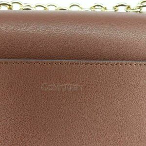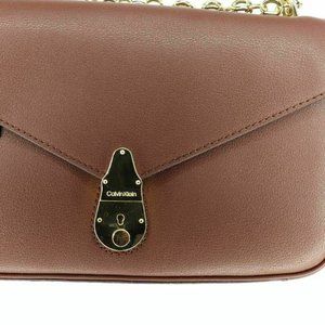 Calvin Klein Womens Daytonna Locked Chain Crossbody Bag Brown Flap Zip S New
