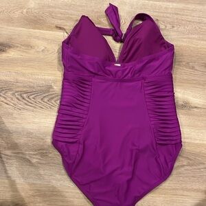 Calvin Klein Women's Dragon Fruit Pleated Halter One-Piece Swimsuit, Pink, 14