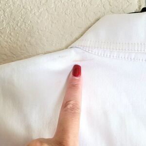 A preppy collar and full-button front don this cap-sleeved dress from Calvin Klein. Slight make up stain from trying on. Can be cleaned. Please see pic.