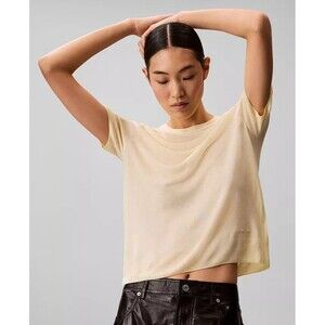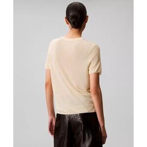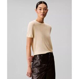 Calvin Klein Women's Fine Gauge Short-Sleeve Sweater TopSoft Lightweight Cream L
