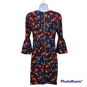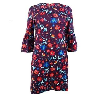Calvin Klein Women's Floral Bell-Sleeve Dress Burgundy/Poppy Red Size 2 NWT
