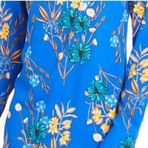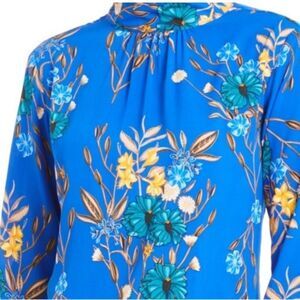 Calvin Klein Women's Floral Print Mock Neck Top Blue Size Large