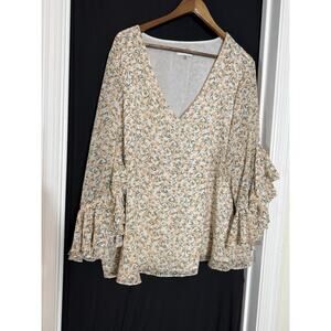 Calvin Klein Women's Floral Ruffle Boho Blouse Size 2X Batwing Sleeves Fairy