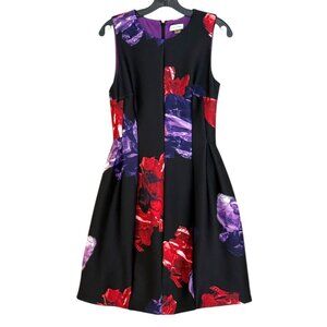 Calvin Klein Women's Floral Sleeveless Scuba Dress Black Red Size 6
