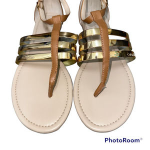 Calvin Klein Women's Gold Tan Sabia Strap Sandals 8.5