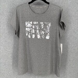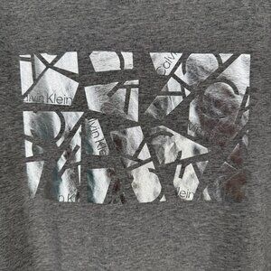 Calvin Klein Womens Graphic Logo T Shirt Size L Gray Metallic Silver Casual NEW