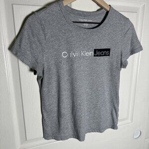 Calvin Klein Womens Gray Heather Short Sleeve T-Shirt Sz Medium Spell Out Top