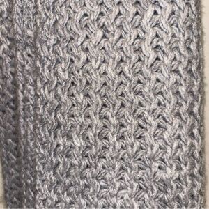 Stay warm and stylish with this elegant gray knit scarf. Perfect for any occasion