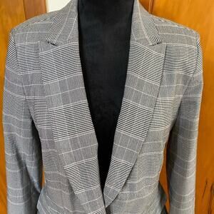 Stylish Calvin Klein blazer. Classic plaid pattern. Single-button closure. Perfect for professional wear.