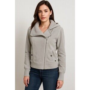 Calvin Klein Women’s Gray Sherpa Collar Asymmetrical Zip Jacket Size M