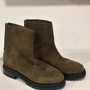 Calvin Klein Womens Greg Suede Solid Block Heel Mid-Calf Boots Olive Green