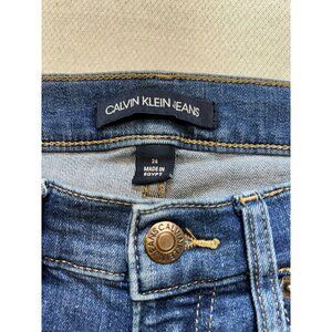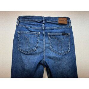 Calvin Klein Women's High Rise Slim Jeans Raw Hem Stretch Size 26 Blue Denim