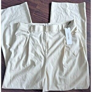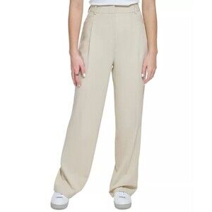 Calvin Klein Womens High Waist Wide Leg comfortable Dress pants Beige Oatmeal 14