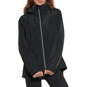 Calvin Klein Women's Hooded Performance Side-Snap Rain Jacket, Black, S