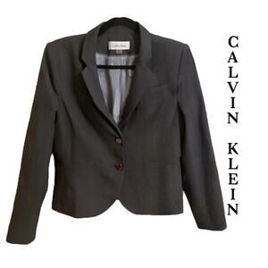 Calvin Klein Women's Jacket Size 12P Grey Modern Two Button Short Pockets