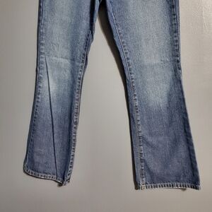 Calvin Klein women's 100% cotton flare jeans, size 2. There is light distressing on the edges of seams as part of the design.