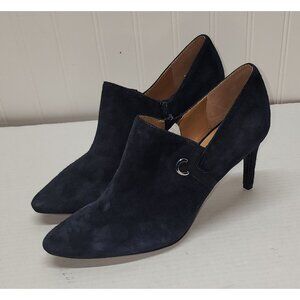 Calvin Klein Womens Joanie Navy Suede textured Heeled Ankle Booties With Zipper