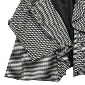 Calvin Klein Women's Large Houndstooth Ruffle Front Waterfall Blazer Jacket B/W