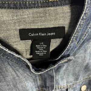 Calvin Klein Women’s Large Jean Jacket Full Zip Band Collar