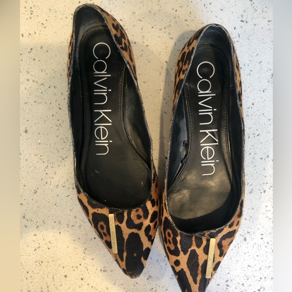 Step out in style with these Calvin Klein leopard print flats. Perfect for adding a touch of wild elegance to any outfit.