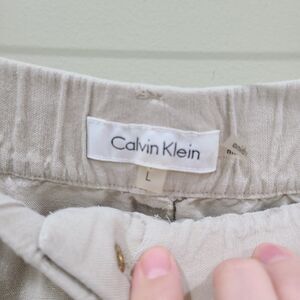 Calvin Klein Womens Linen Blend Pull On Pants Large Tan Lightweight Beachy