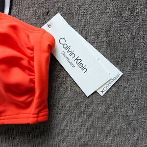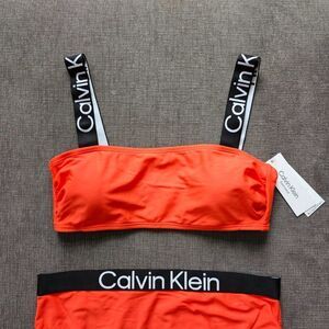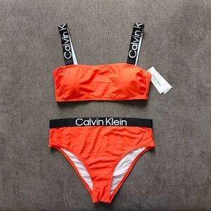 Calvin Klein Women's orange Logo strap Elastic Top & high-rise bikini Bottom 2 Piece Set Size XLarge