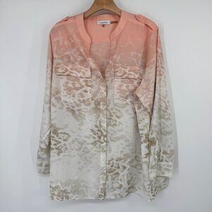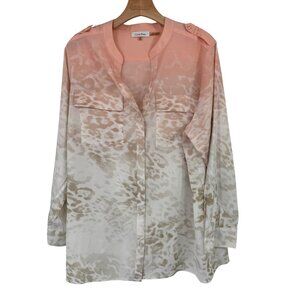 Calvin Klein Womens Long Sleeve Blouse Size 1X plus Peach Beige Ombre