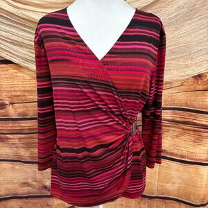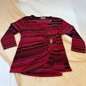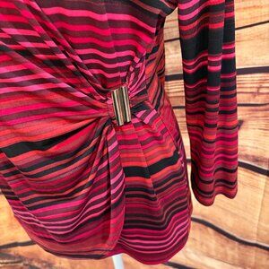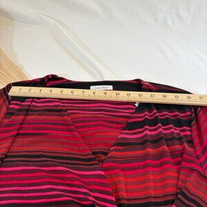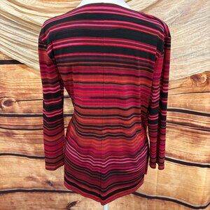Calvin Klein Womens Long Sleeve Striped Red Pink Black V Neck Blouse Sz M
