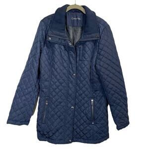 Calvin Klein Womens Marine Quilt Anorak Jacket Full Zip Size Small Navy Blue