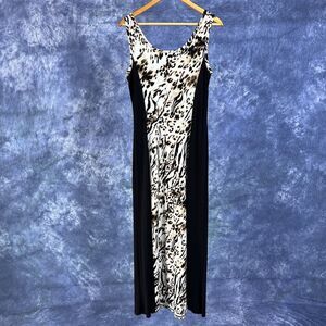 Calvin Klein Women's Maxi Dress Sleeveless Black Brown Cream Sz M