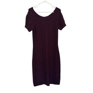 Calvin Klein Womens Medium Dress Purple Short Sleeve Cable Knit Sweater Dress