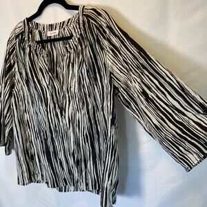 Calvin Klein Women’s Medium Silk Zebra Stripe 3/4 Sleeve Blouse Top