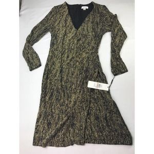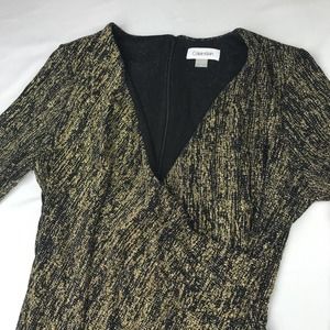 Calvin Klein Women's Metallic Faux Wrap Dress, Black/Gold Sz 12