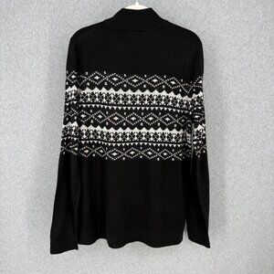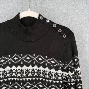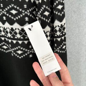 Calvin Klein Womens Mock Button Neck Sweater Size L Black White Faire Isle NEW
