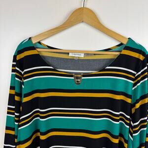 Calvin Klein Womens Multicolor Striped Blouse Sz 2X | Office Career Lightweight